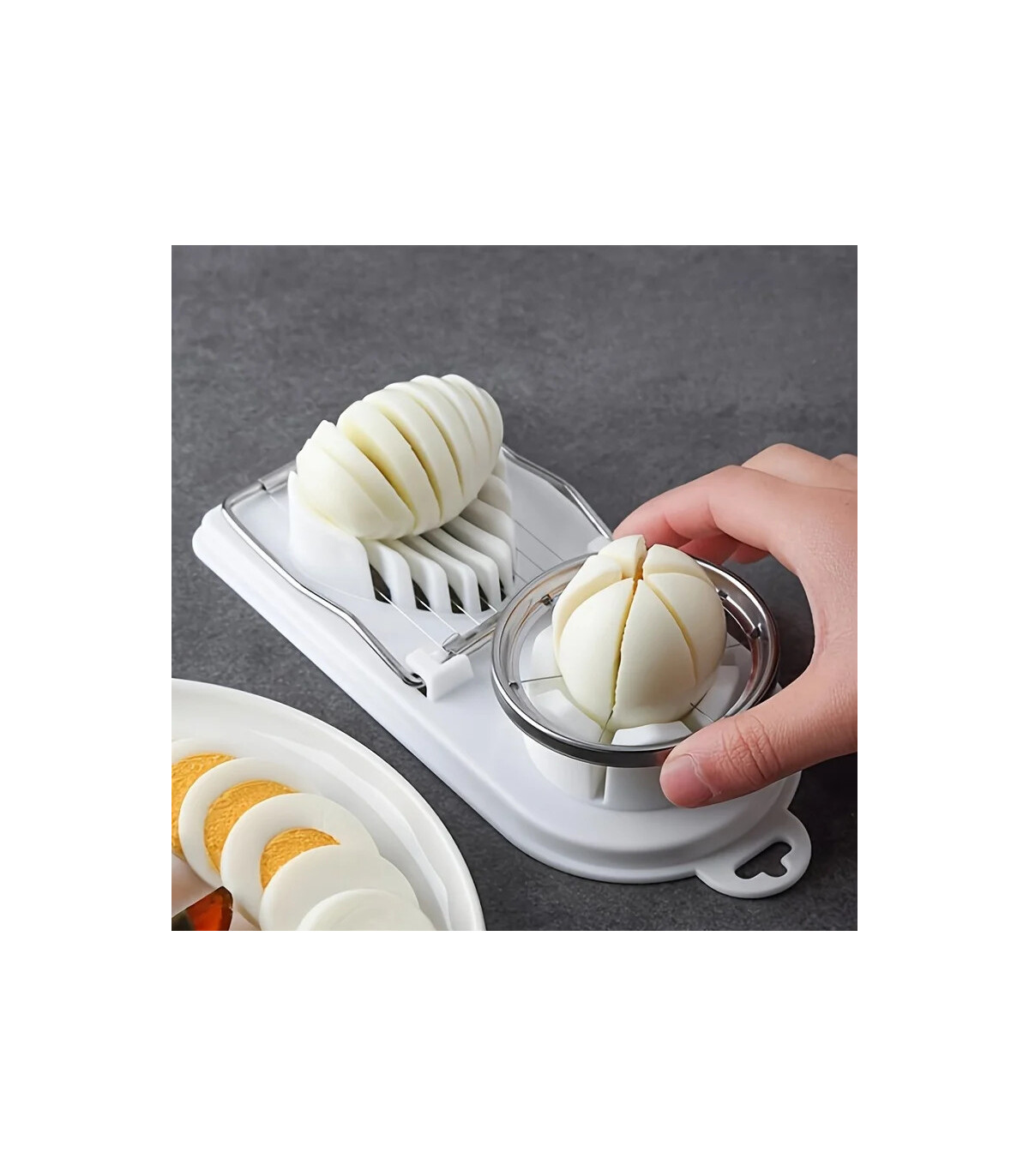 • Rebanador de huevos multifuncional:Este rebanador de huevos de acero inoxidable no es solo un cortador de huevos, sino una herramienta dos en uno que puede partir y rebanar perfectamente los huevos, convirtiéndolo en un gadget de cocina versátil.