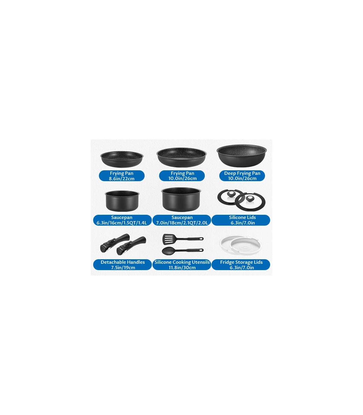 Empilable et compact :Cet ensemble d'ustensiles de cuisine à induction est idéal pour les petites cuisines, les camping-cars ou le camping ; La poignée amovible facilite le rangement et le transport.