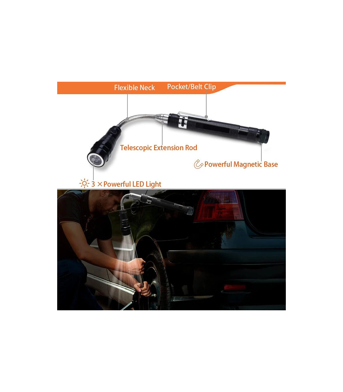 1 lampe de poche télescopique LED à tuyau magnétique ;