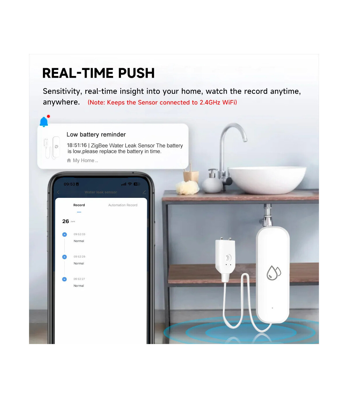 Lire la suite[Wifi 1Pz] Sensore di perdita d'acqua allarme di perdita d'acqua WiFi/ZigBee Tuya rilevatore di allarme di allagamento casa intelligente APP telecomando Protezione di sicurezza della casa intelligente